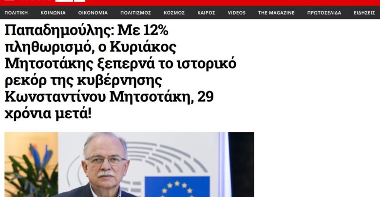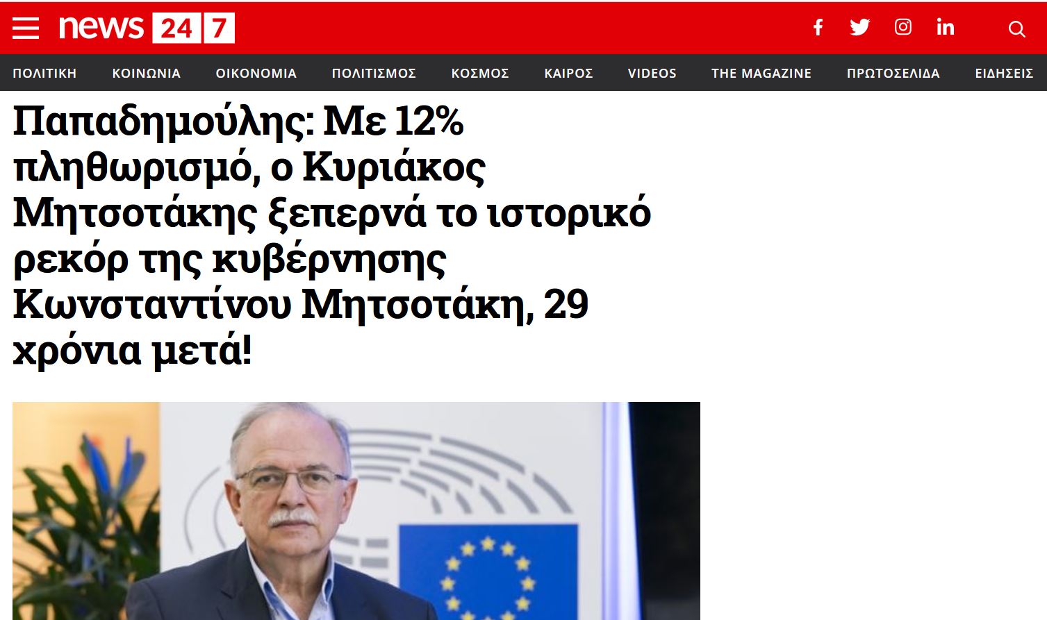 Άρθρο με τίτλο: «Με 12% πληθωρισμό, ο Κυρ. Μητσοτάκης ξεπερνά το ιστορικό ρεκόρ της κυβέρνησης του Κωνσταντίνου Μητσοτάκη, 29 χρόνια μετά!» (<-LINK), υπογράφει ο Αντιπρόεδρος του Ευρωπαϊκού Κοινοβουλίου και επικεφαλής της Ευρωομάδας του ΣΥΡΙΖΑ-Προοδευτική Συμμαχία, Δημήτρης Παπαδημούλης, στην ενημερωτική ιστοσελίδα news247.gr.