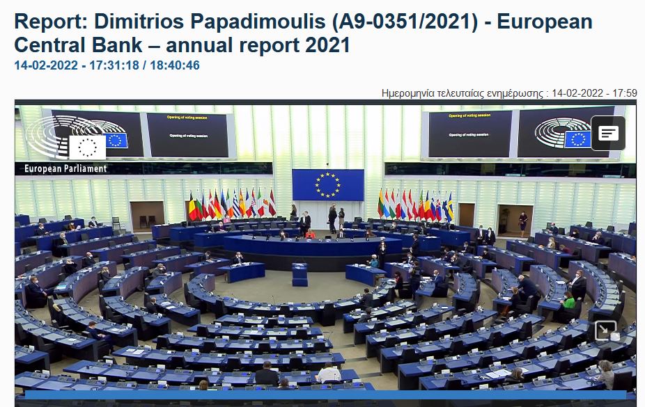 Oμιλία του Δημ. Παπαδημούλη στην Ολομέλεια, ως Εισηγητή του Ευρωπαϊκού Κοινοβουλίου για την Ετήσια Έκθεση της ΕΚΤ για το 2021 – Απόψε Τρίτη 15/2, η τελική ψηφοφορία (ΒΙΝΤΕΟ)