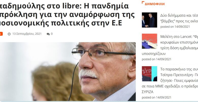 Άρθρο με τίτλο: «Η πανδημία ως πρόκληση για αναμόρφωση της ευρωπαϊκής δημοσιονομικής πολιτικής» (<<LINK δημοσίευσης) του Αντιπροέδρου του Ευρωπαϊκού Κοινοβουλίου και επικεφαλής της Ευρωομάδας του ΣΥΡΙΖΑ-Προοδευτική Συμμαχία, Δημήτρη Παπαδημούλη, αναφορικά με την ανάγκη αναμόρφωσης της ευρωπαϊκής δημοσιονομικής πολιτικής και ενίσχυσης της δημοσιονομικής ικανότητας της Ευρωζώνης, φιλοξενεί η ιστοσελίδα libre.gr.