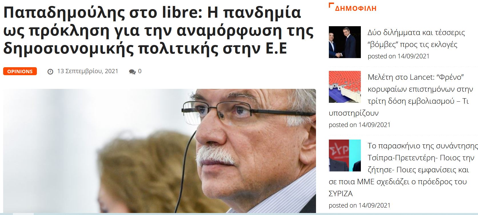 Άρθρο με τίτλο: «Η πανδημία ως πρόκληση για αναμόρφωση της ευρωπαϊκής δημοσιονομικής πολιτικής» (<<LINK δημοσίευσης) του Αντιπροέδρου του Ευρωπαϊκού Κοινοβουλίου και επικεφαλής της Ευρωομάδας του ΣΥΡΙΖΑ-Προοδευτική Συμμαχία, Δημήτρη Παπαδημούλη, αναφορικά με την ανάγκη αναμόρφωσης της ευρωπαϊκής δημοσιονομικής πολιτικής και ενίσχυσης της δημοσιονομικής ικανότητας της Ευρωζώνης, φιλοξενεί η ιστοσελίδα libre.gr.