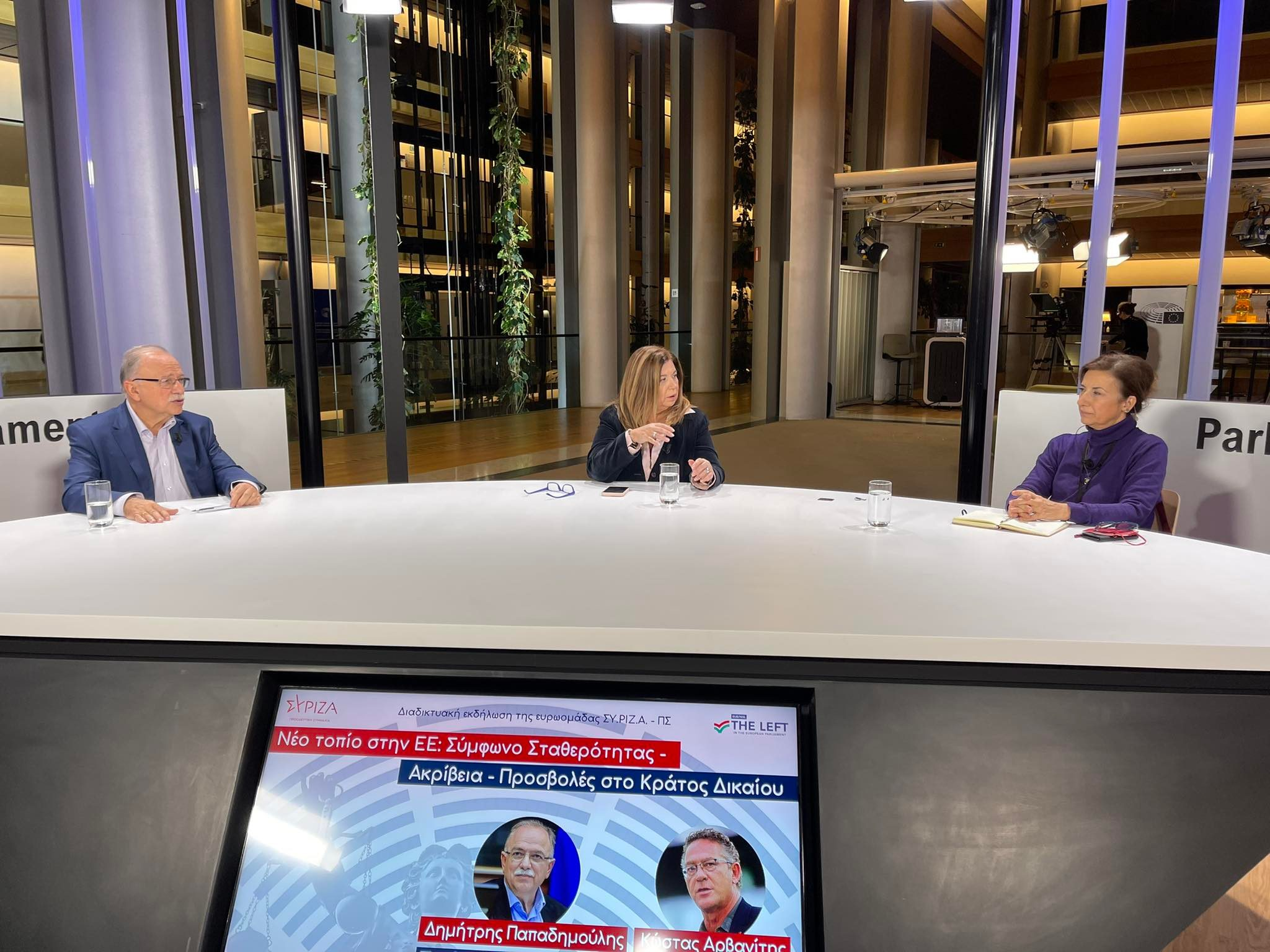 Εκδήλωση Ευρωομάδας ΣΥΡΙΖΑ-ΠΣ: “Νέο τοπίο στην ΕΕ: Σύμφωνο Σταθερότητας – Ακρίβεια – Προσβολές στο Κράτος Δικαίου” (ΒΙΝΤΕΟ)