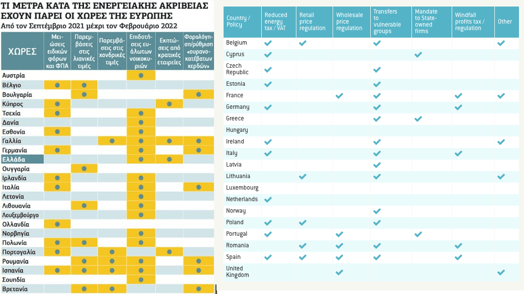 τα μέτρα κατά της ενεργειακής ακρίβειας, που έχουν λάβει οι χώρες της ΕΕ (στοιχεία Σεπτ 2021-Φεβ. 2022) (LINK) -