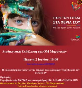 Η εκδήλωση έχει τίτλο «Η Ευρωπαϊκή πρόταση για τη στήριξη των οικονομιών της ΕΕ, μετά τον Covid-19», και ο Δημήτρης Παπαδημούλης, θα αναφερθεί σε θέματα που αφορούν τον κλάδο των Ελλήνων μηχανικών όπως