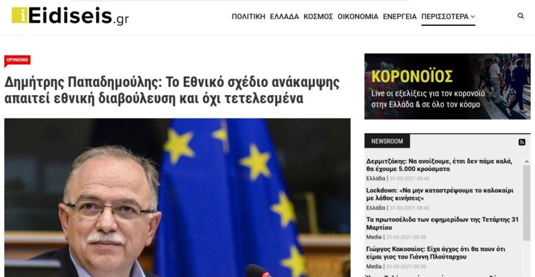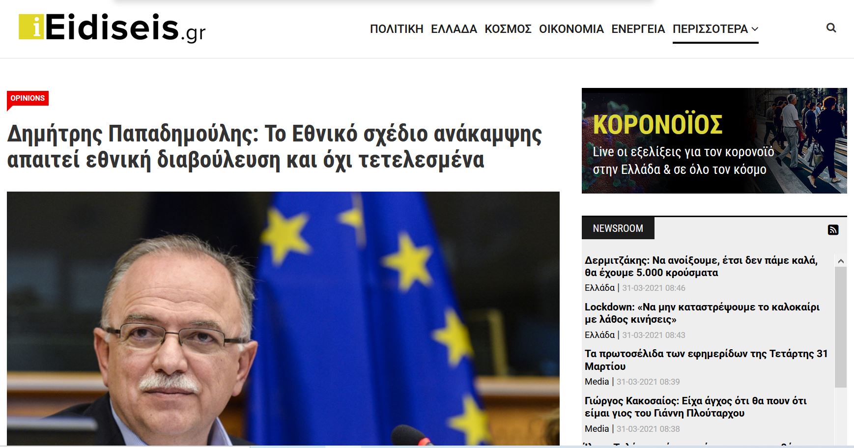 • Άρθρο στο ενημερωτικό site iEidiseis με αφορμή την παρουσίαση του ελληνικού σχεδίου ανάκαμψης