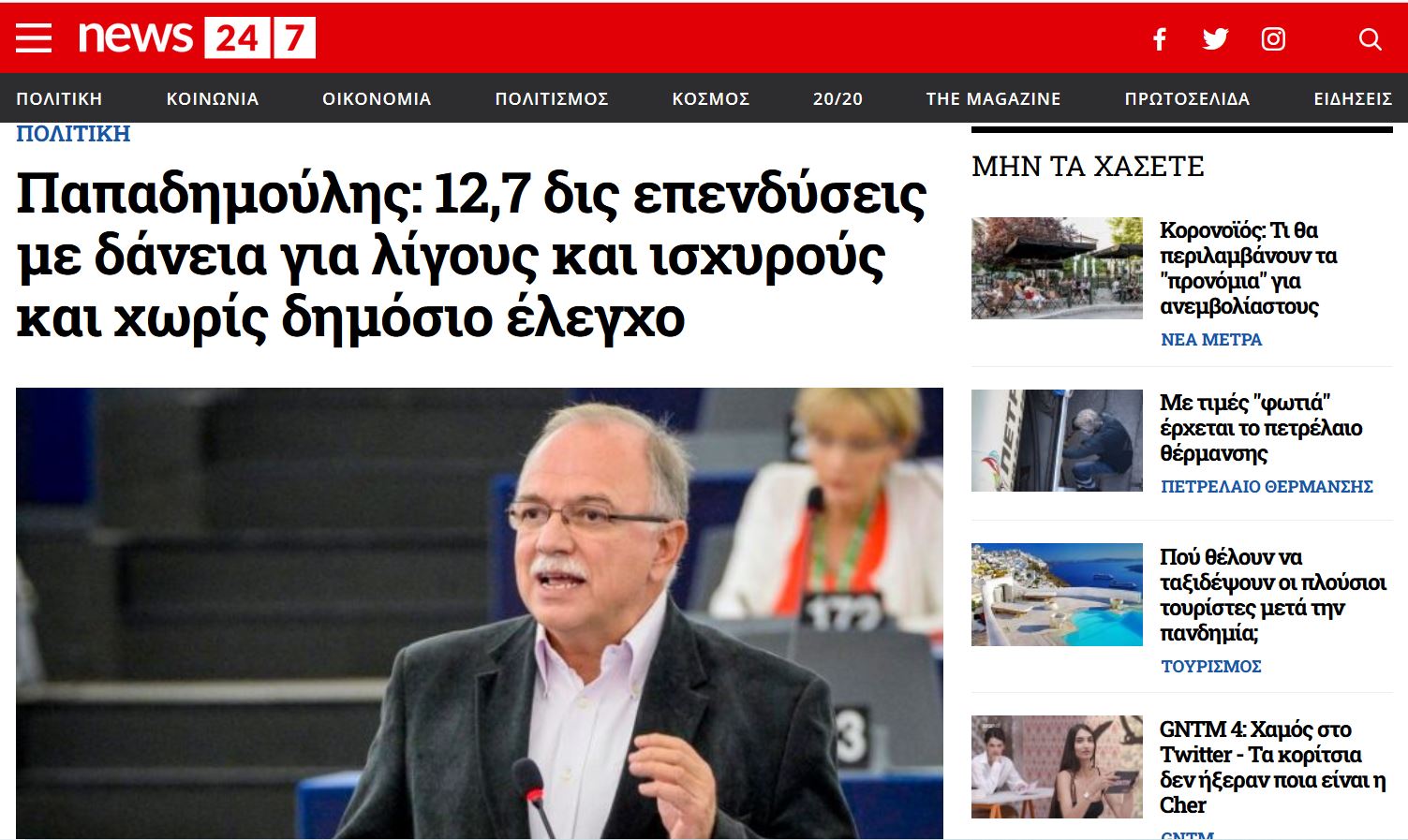 • Άρθρο του Δημήτρη Παπαδημούλη στο News 24/7
