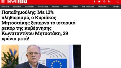 Άρθρο με τίτλο: «Με 12% πληθωρισμό, ο Κυρ. Μητσοτάκης ξεπερνά το ιστορικό ρεκόρ της κυβέρνησης του Κωνσταντίνου Μητσοτάκη, 29 χρόνια…