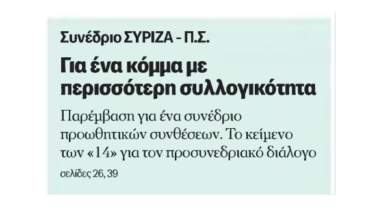 Άρθρο παρέμβασης με τίτλο «Ο ΣΥΡΙΖΑ-ΠΣ χρειάζεται ριζική ανασύνταξη» υπογράφει ο Αντιπρόεδρος του Ευρωπαϊκού Κοινοβουλίου και επικεφαλής της Ευρωομάδας του…