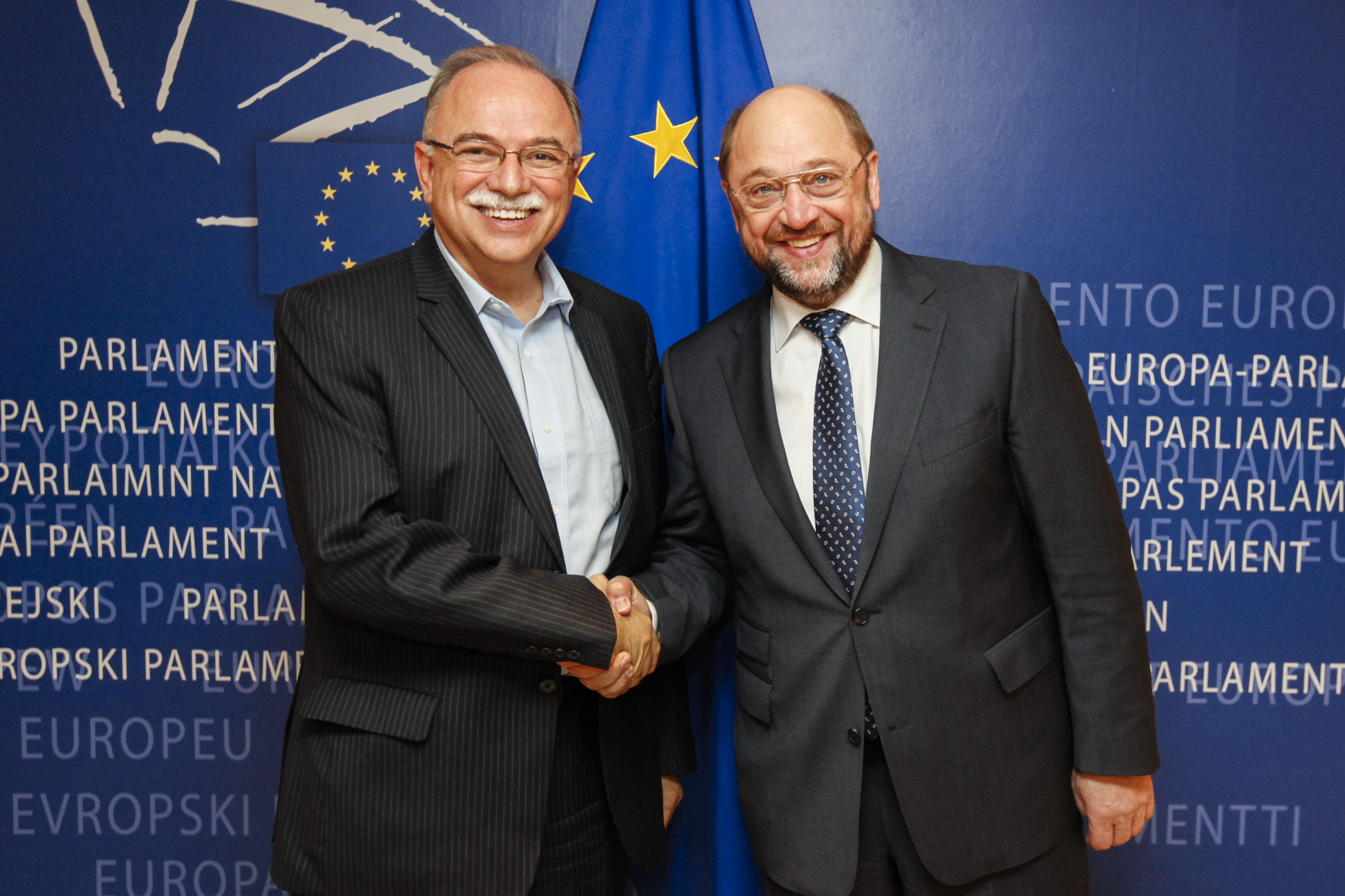 Δημ. Παπαδημούλης: «Δεν είναι ώρα για Exit, αλλά για περισσότερη και αποτελεσματικότερη Ευρωπαϊκή συνεργασία και στο προσφυγικό» Μάρτιν Σουλτς: «Η Ελλάδα χρειάζεται βοήθεια και μάλιστα, γρήγορα»